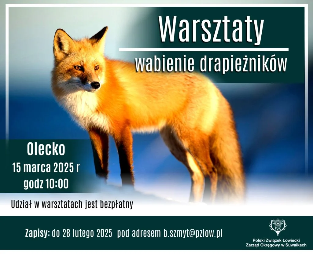 Zarząd Okręgowy PZŁ w Suwałkach zaprasza na warsztaty z wabienia drapieżników w dniu 15 marca 2025 r